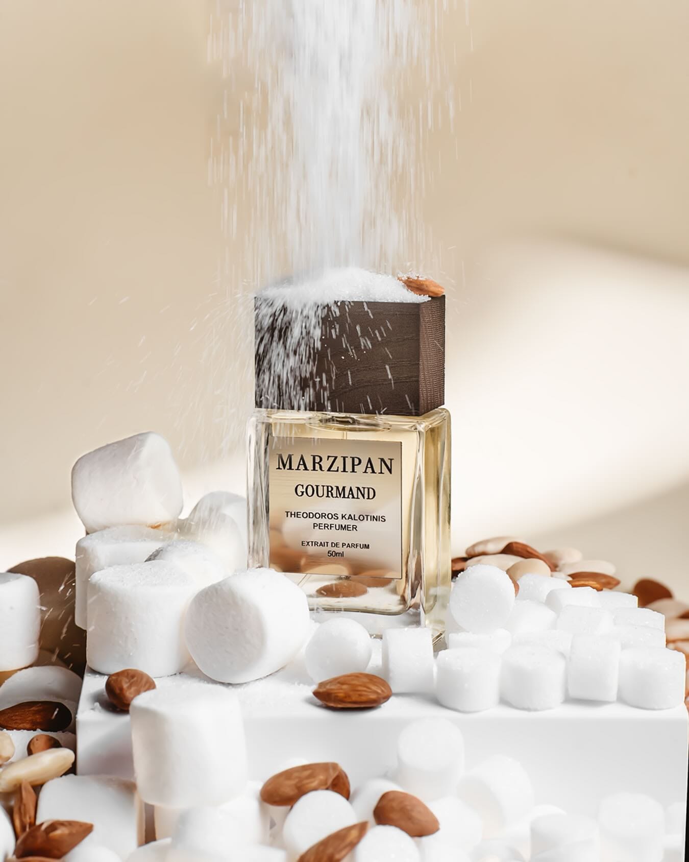 קסם השקד בצורתו העדינה והמפנקת, זיכרונות ילדות פוגשים  בושם בוגר ומתוחכם. מרציפן גורמנד מביא את טעם השקדים הטריים והסוכר הקרמלי הישר מהזיכרון אל העור. מרשמלו צלוי מתווסף לתערובת ויוצר חוויה נוסטלגית ועשירה מאין כמותה. זה לא עוד בושם מתוק – זהו מסע רגשי שמתחיל בחיוך ומסתיים בהתמכרות מוחלטת. הבושם נמס על העור כמו קינוח חלומי ומקנה ארומה המעוררת רגעי שמחה. כל שאיפה מעלה חיוך קטן עם סנט המצליח לתפוס את הטעם האמיתי של מרשמלו צלוי. מושלם למי שרוצה לחוות ניחוח גורמנד אמיתי שלא מתפשר על איכות.